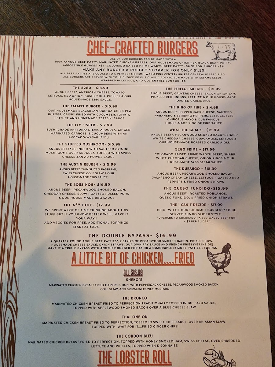 2 quarter pound angus beef* patties, cheddar, swiss & american cheese, pickles & our 5280 sauce